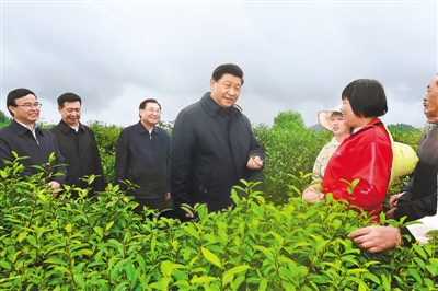 4月20日至23日,中共中央总书记、国家主席、中央军委主席习近平在陕西考察。这是4月21日,习近平在安康市平利县老县镇蒋家坪村女娲凤凰茶业现代示范园区,同茶农们亲切交谈。