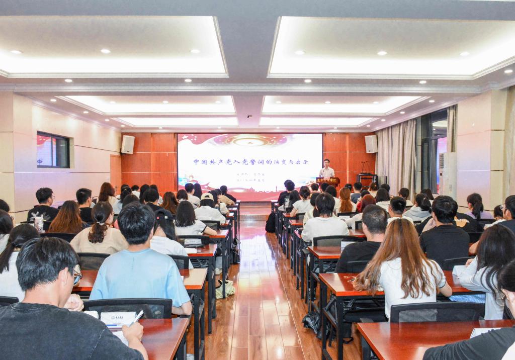 翁添富以历史时间轴为主线,详细梳理中国共产党入党誓词在百年变迁中的“形成”“发展”“成熟”“拓展”“完善”过程,阐述中国共产党入党誓词的历史演变传承,深刻剖析每个历史背景下入党誓词的深刻内涵和时代意义。他指出,我们要从入党誓词的历史演进逻辑中深刻领会其时代价值,进一步强化“我究竟是谁”的党员意识,铸牢“要到哪里去”的历史使命,全面、系统、科学地理解入党誓词赋予党员的使命和责任。