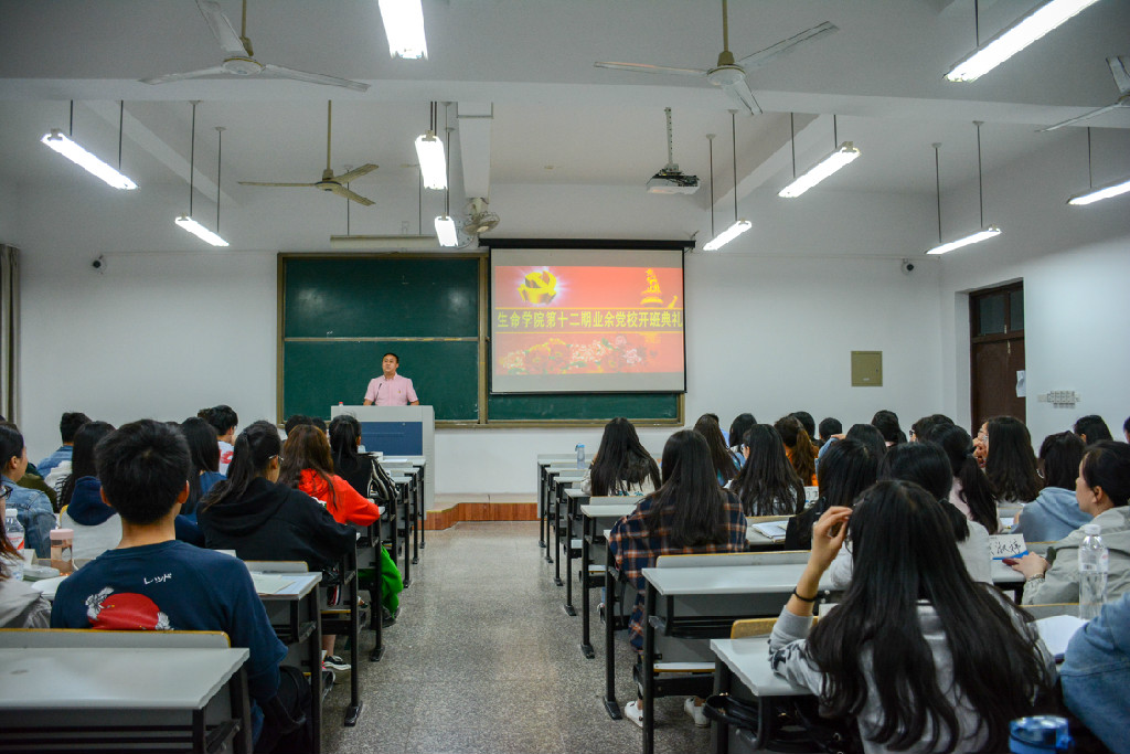 4月19日晚,公司党总支在2-408教室举行第十二期业余党校开班典礼,公司党总支副书记、分党校董事长杨启富致辞并讲授首堂党课。员工党支部书记、党员代表及102名党校学员参加党课学习。