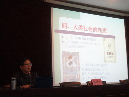 本次讲座以“理想教育的关键——在现实与理想之间架起桥梁”为主题。杨老师首先从“个人生活的理想”和“人类社会的理想”作为切入点,用生动形象的语言,新颖独特的视角,讲述了现代人们追求和社会腾飞的理想目标。随后,他把空想主义与共产主义作比,强调了共产主义的实际可行性。他表示,只有明确自身任务,从实际出发,把理想与现实相结合,才能顺应时代步伐,展望未来。杨老师的精彩讲授深深地感染了每位同学,报告厅里不时响起热烈的掌声。