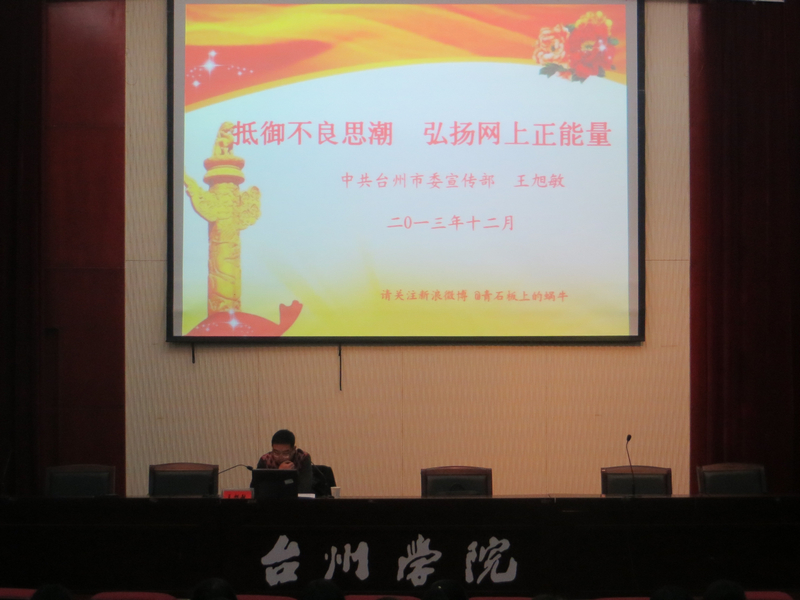 12月22日,K1体育第七期业余党校邀请台州市委宣传部王旭敏作《抵御不良思潮 弘扬网上正能量》的党课专题讲座,党校学员和员工寝室长参加了本次学习。 讲座上,王旭敏向同学们介绍了国内当下网络舆论的总体形势,从目前网络舆论行为的主要特点、网络社会里的不良思潮、西方势力对中国舆论的渗透等三方面做详细阐述,希望同学们能够自觉抵制网络乱象,理性辨别社会现象,弘扬网络正能量。 此次讲座旨在帮助同学们理性辩证对对待网络舆论,做到“不造谣、不信谣、不传谣”,重视社会主义核心价值观的舆论引导作用。