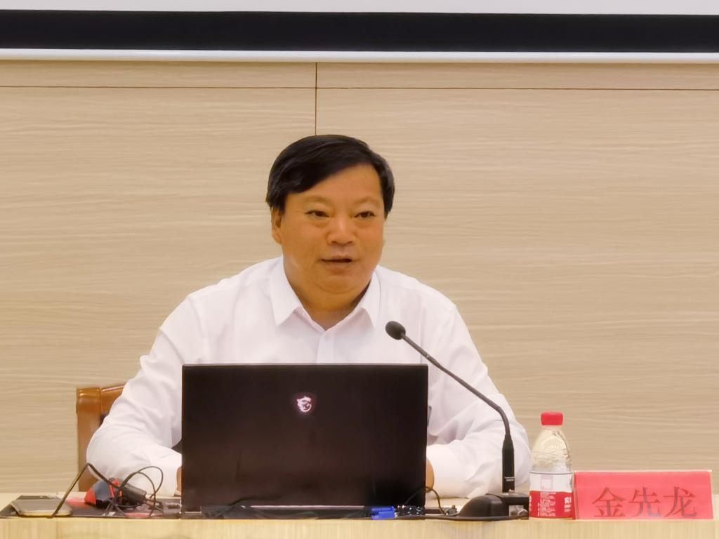 金先龙引述习近平总书记在党史学习教育动员大会上的重要讲话,以全党开展党史学习教育“三个必然要求”开篇,从实现伟大梦想、推进伟大事业、建设伟大工程“三方面的需要”阐释开展党史教育的必要性。他以救国大业开天辟地、立国大业改天换地、富国大业翻天覆地、强国大业惊天动地的脉络,生动详细地讲述中国共产党百年的苦难辉煌历程。他从井冈山时期的“三大纪律”“八项注意”,到长征路上“半条棉被的故事”,再到解放战争时期的土地革命,以及十八大后的全面脱贫攻坚等诸多生动事例,深刻阐明了中国共产党为中华民族谋复兴、为中国人民谋幸福的初心使命。最后,他以注重理论创新和理论武装、注重人民的利益并依靠人民、注重把握主要矛盾及其变化、注重能力和本领的提升、注重和保持党的先进性和纯洁性等“五个注重”勉励大家要继承和发扬党的优良传统和作风,传承红色基因,坚定信仰信念,凝聚奋进力量,赓续共产党人的精神血脉。