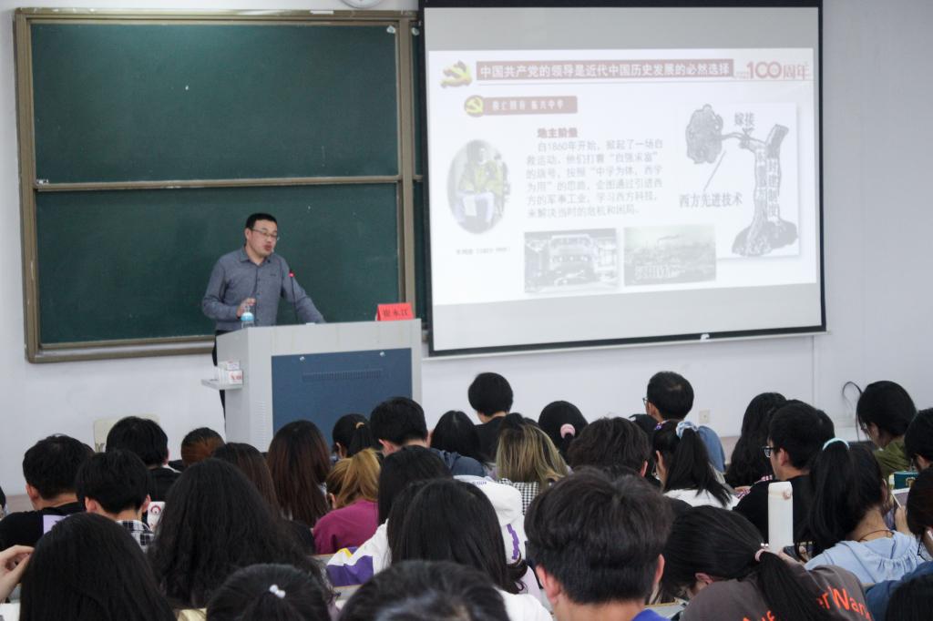 4月29日下午,马克思主义公司中国近代史纲要教研室主任、副教授崔永江在2-303为第十五期业余党校学员作“历史和人民为什么选择了中国共产党”专题党课,党总支副书记徐敏主持,全体业余党校学员参加学习。