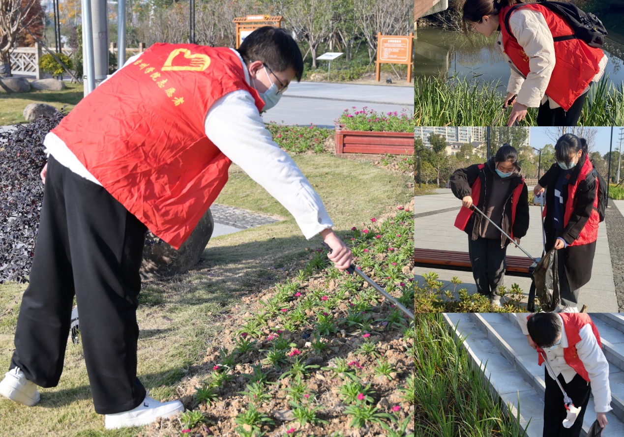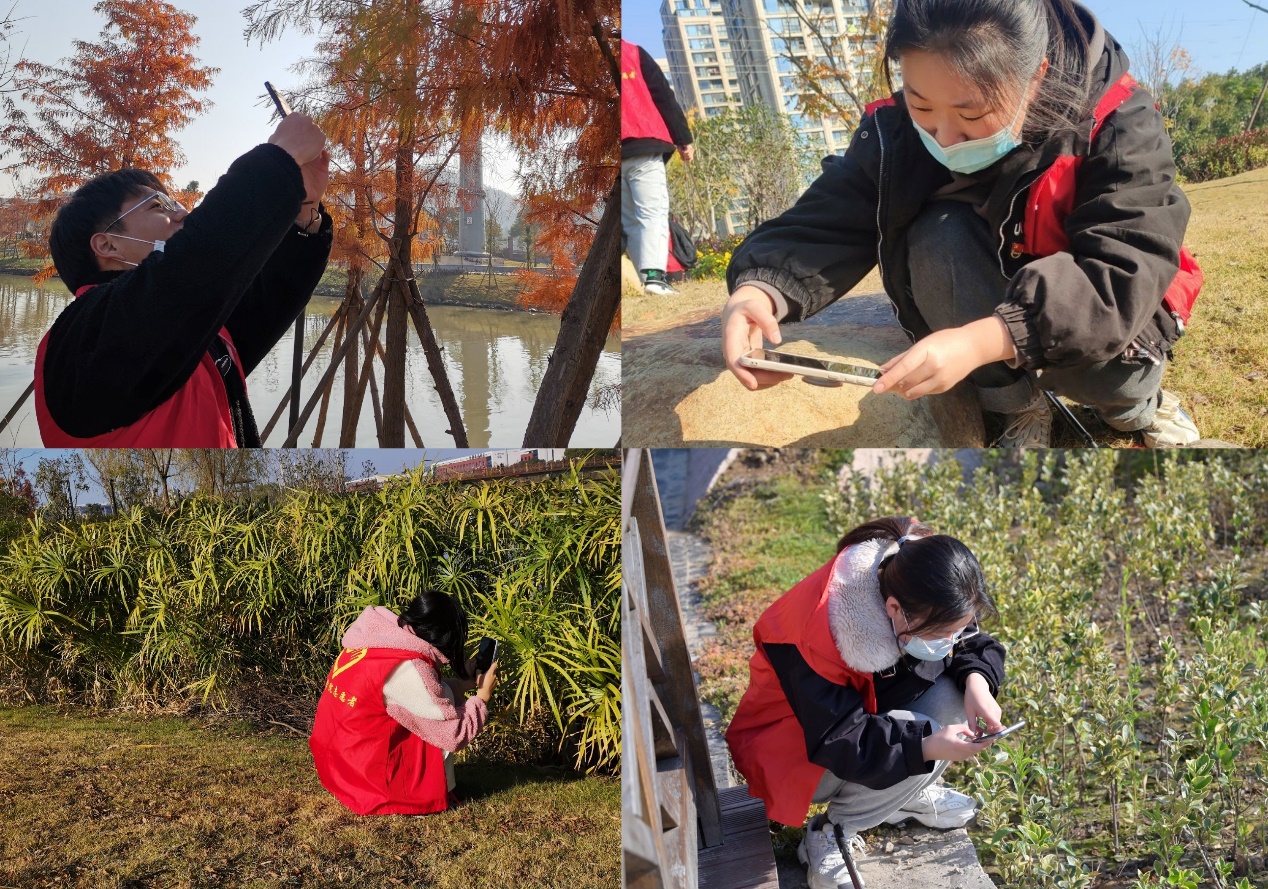 在了解本次活动主要内容及注意事项后,支部全体党员步行前往公司隔壁的金洋湿地公园,以小组为单位,展开对公园植物多样性的调查。各小组成员分工明确,协调合作,有的负责拍摄植物,有的负责辨别植物并查阅相关资料,还有的同志负责做好调查记录。大家充分发挥专业特长,将课堂所学理论知识与实践活动紧密结合,梳理出公园内的各类典型植物,并做好分门别类。各小组之间紧密沟通交流,相互分享各自采样的植物,力求将公园中的植物种类全面覆盖。在搜寻植物的过程中,大家同时身着红色志愿服,手持架子、垃圾袋等清捡工具,随手清理路边、草丛中的垃圾,以实际行动助力文明城市创建。