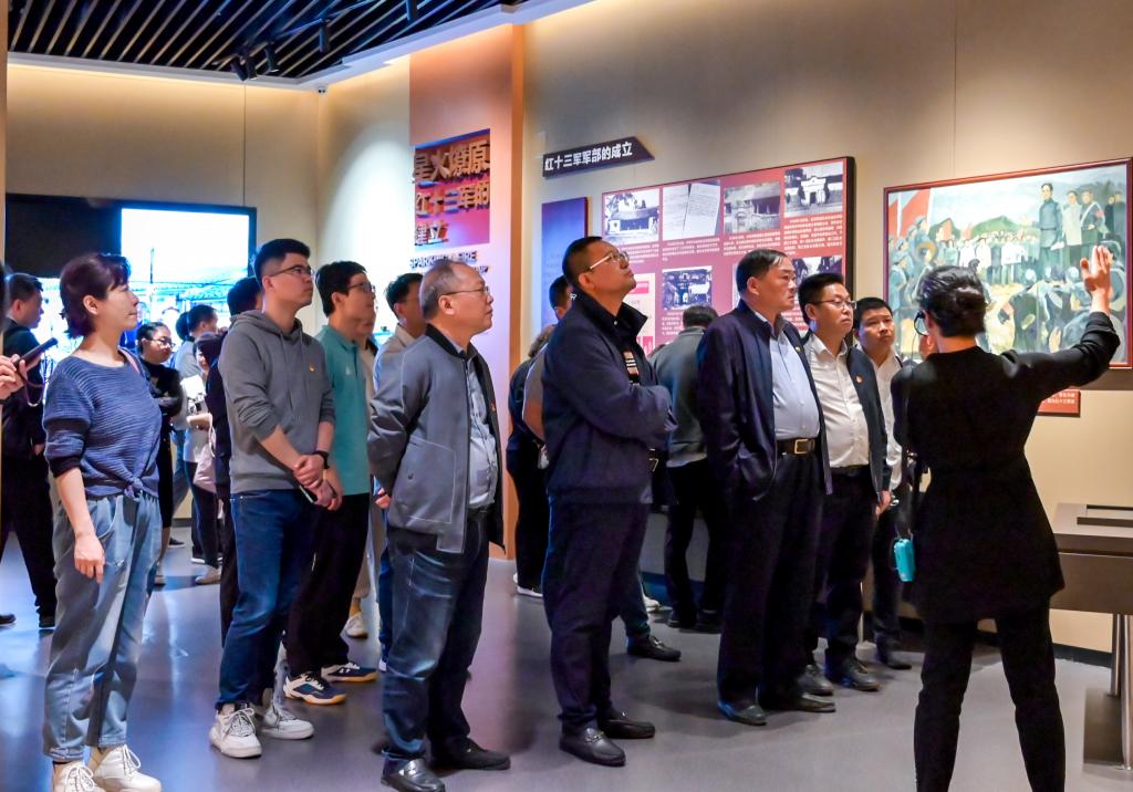 在讲解员的带领下,全体教师党员参观了红十三军历史纪念馆和军部旧址,看着纪念馆里一幅幅珍贵的历史图片,听着一个个震撼人心的革命历史故事,教师党员们深刻感受革命先辈为民族独立、人民解放事业而英勇奋斗、前赴后继的光辉业绩和崇高的革命精神,更加坚定了跟党走的信念。在红十三军革命纪念碑前,教师党员驻足瞻仰,向革命先辈鞠躬致敬;在纪念广场的宣誓墙前,大家面对鲜红的党旗,庄严举起右手,重温入党誓词;在红十三军的精神感召下,党员们立志以干在实处、走在前列、勇立潮头的劲头不断砥砺前行。