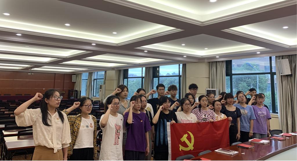 会上,同志们集中学习《习近平科学的思维方法在浙江的探索与实践》和习近平给北京大学的职工们的回信,大家就目前的学习生活工作重点自由讨论交流。于“七一”建党的喜庆时刻,支部书记王培蕾发放政治生日贺卡,与各党员同志一齐迎庆建党华诞,不忘初心,牢记使命。在这之后,每位同志结合自身实际情况向党表忠心,说真话,诉真情,表达永远跟党走的决心。最后全体成员重温了入党誓词,王培蕾带领全体党员举起右拳庄严宣誓。入党誓词是行动指南,是共产党人的座右铭,只有在前进路上不断重温,终身践行,不断校正航向,方能行稳致远。