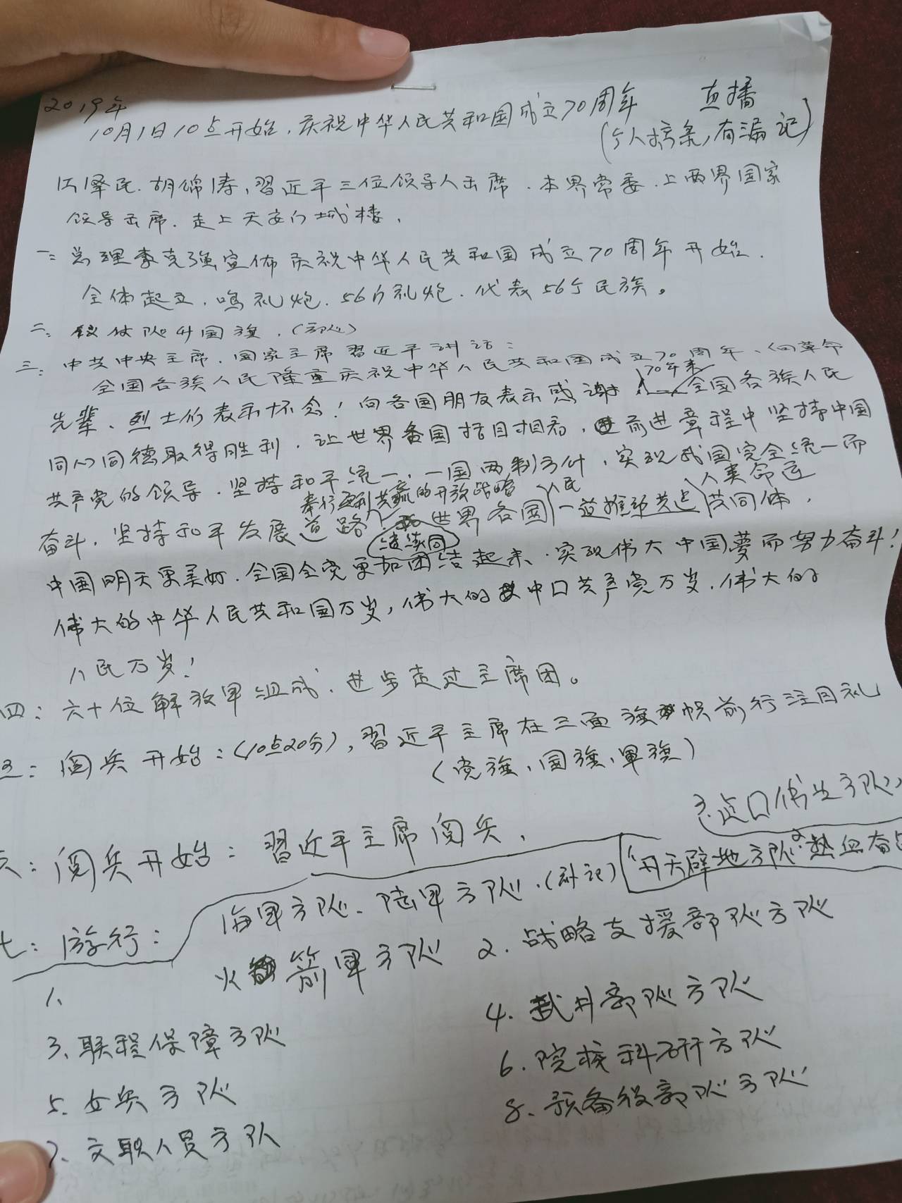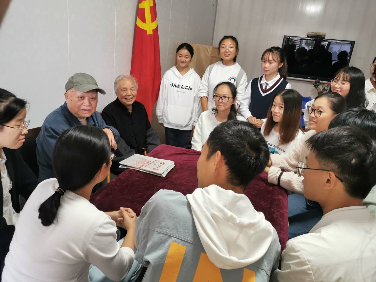 在活动进行过程中,支部成员还邀请托老院张少秋和吴彩凤两位老党员为大家上“党课”。正值耄耋之年的他们,对同学们的到来表示非常的激动,与大家讲述那段跌宕起伏的从军经历。张少秋同志于1950年加入解放军,曾参加过抗美援朝,西藏平叛等战乱,当时行军环境恶劣,非常艰苦,多次死里逃生令同学们动容。他们是革命战友结识,吴彩凤同志跟随他从抗美援朝到山西大同再到西安、宝鸡、甘肃一共走了7、8年,他们无怨无悔,一心为祖国效力的赤诚之心尽显一名共产党员的使命与担当。他们理想信念坚定,如今仍心系国家大事,密切关注国家建设,只要身体状况允许,都会参加党支部每月一次的组织生活会。吴彩凤同志还拿出了他们在重复多遍观看70周年阅兵仪式后,以及阅读十九大、十九届四中全会等报刊新闻所摘录的笔记,一架架飞机,一辆辆坦克,一艘艘航母,都是国富民强的最好注解。他们在话语间更是充满对国家的繁荣富强欣慰不已,并殷切希望和嘱托大家要学好文化知识,将来定要投身建设美好的祖国未来之中。