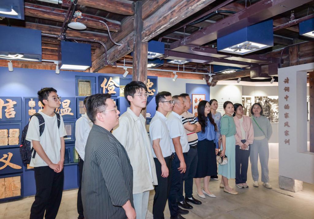 台州家风家训馆建筑保留民清式庭院老宅的古朴历史感,馆内通过线装书籍、折页书籍、卷轴书籍、现代书籍四本不同的书籍造型展示中华家风、台州家风、椒江家风、时代新风等板块,阐述着家风代代相传的价值信念和道德规范。师生党员们在各个板块前驻足端详,认真感受台州家风文化的多元和包容,体会廉洁文化与家风文化的相互交融。大家纷纷表示,要自觉建树良好家风,筑牢拒腐防变的思想防线,推动从严治党的各项部署要求落在实处,以家风建设促进党风廉政建设不断发展。