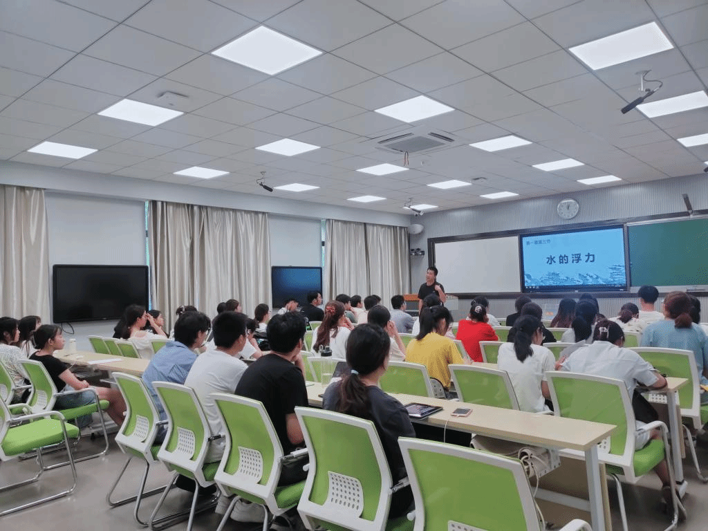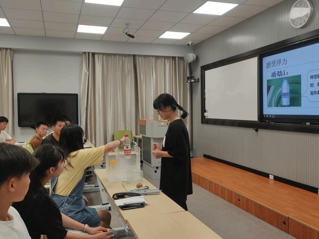 首先,朱珍珍与陈盛市两位同志为大家示范了他们的模拟上课。朱珍珍同志为大家带来了《水的浮力》的模课内容,陈盛市为大家讲解了有关《用手来测量》和《人类认识地球及其运动的历史》的课程。