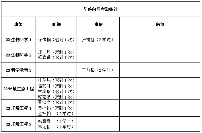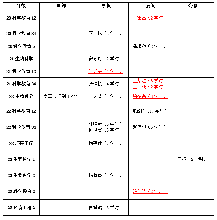 注:请带下划线标注的同学及时补全请假手续。