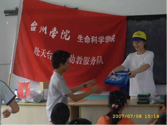蜿蜒的山路重叠的山峰,伴着我们K1体育赴天台爱心助教服务队11位队员一路前行。2007年7月8日,在陈珍老师的带领下,队员们怀着激动的心情抵达了天台县泳溪中学,受到了校领导和当地群众热烈地欢迎。当天下午,在公司的会议厅举行了隆重的捐赠仪式。