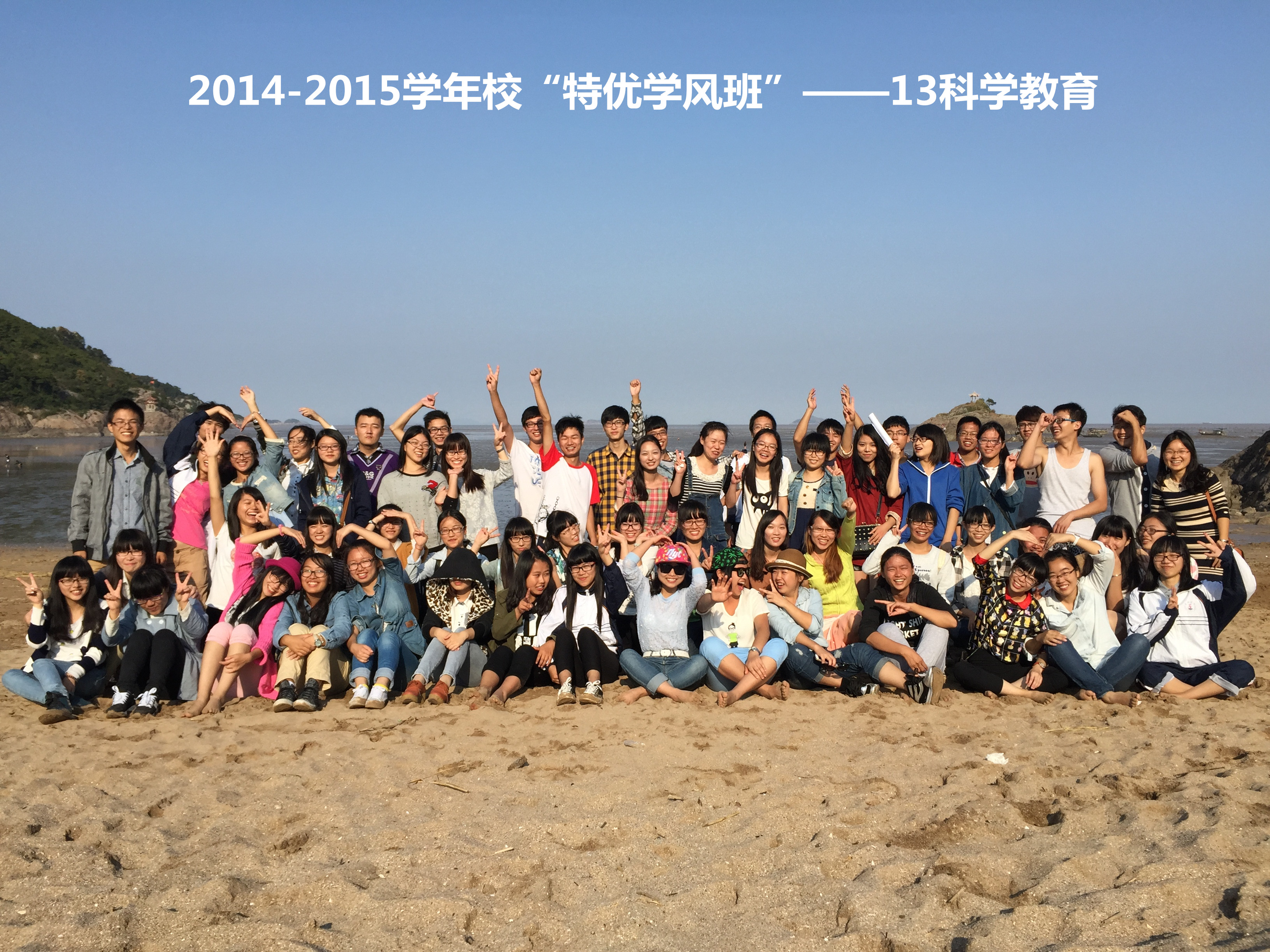 慎思,打造独特班级文化。班级实行分级管理,建立健全班训、班规、班徽和班服等。笃学,提出多元特色举措。专业知识学习采取线上—线下,QQ群讨论,学习帮扶小组等形式,勇攀成绩高分。2014学年班级平均学分绩点高达3.02,计算机二级通过率为79.6%,英语四级达80.6%,普通话为93.5%,毛笔字通过率高达100%。科研实践秉承早立课题,早进实验室,早出成果的“三早”理念,大力培育科研能力。目前,已有24项国家级、省级等课题立项,科研经费高达8万余元,已发表SCI等学术论文两篇。教学实践通过三分钟演讲,十五分钟说课,微课制作等活动不断夯实教学技能,并在师范生即席演讲比赛共7人获奖,占公司获奖人数78%。尚行,丰富多彩第二课堂。班级同学积极参加校园活动,学科竞赛,文体类比赛等共计200余人次获奖,志愿服务高达700余学时。班级荣誉硕果累累,多次获校先进团支部、校微博征集大赛一等奖、校团文化PK大赛二等奖等12余项佳绩。