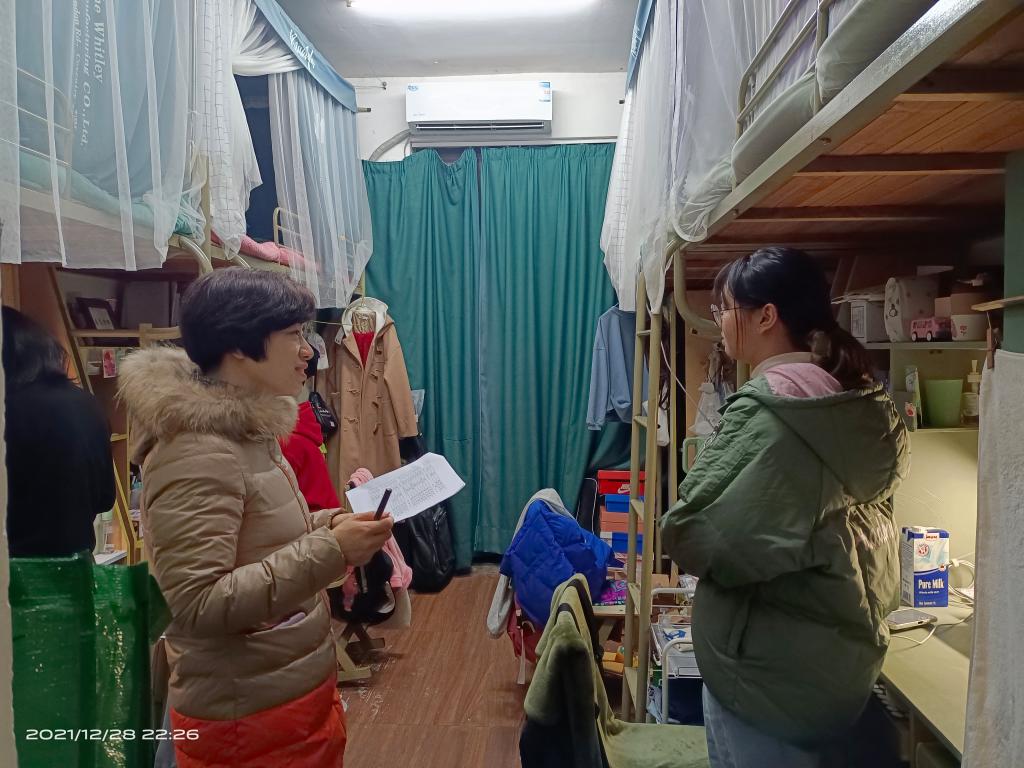 两轮检查均覆盖全院四个年级318间寝室,分6个专项检查组进行,重点针对员工晚归、夜不归寝、未请假离校及“寝室共同体”日报告打卡等方面进行了检查。各组认真排查各寝室的员工归寝情况,叮嘱同学们要自觉遵守疫情防控常态化管理下的员工寝室管理规定,并提醒大家用心备考、诚信应考。经查,公司员工寝室整体秩序良好,“寝室共同体”日报告打卡执行到位,绝大部分同学都能按时归寝,极个别同学因实验、复习等原因晚归,检查组逐一对晚归员工进行信息登记和安全预警方面的提醒。