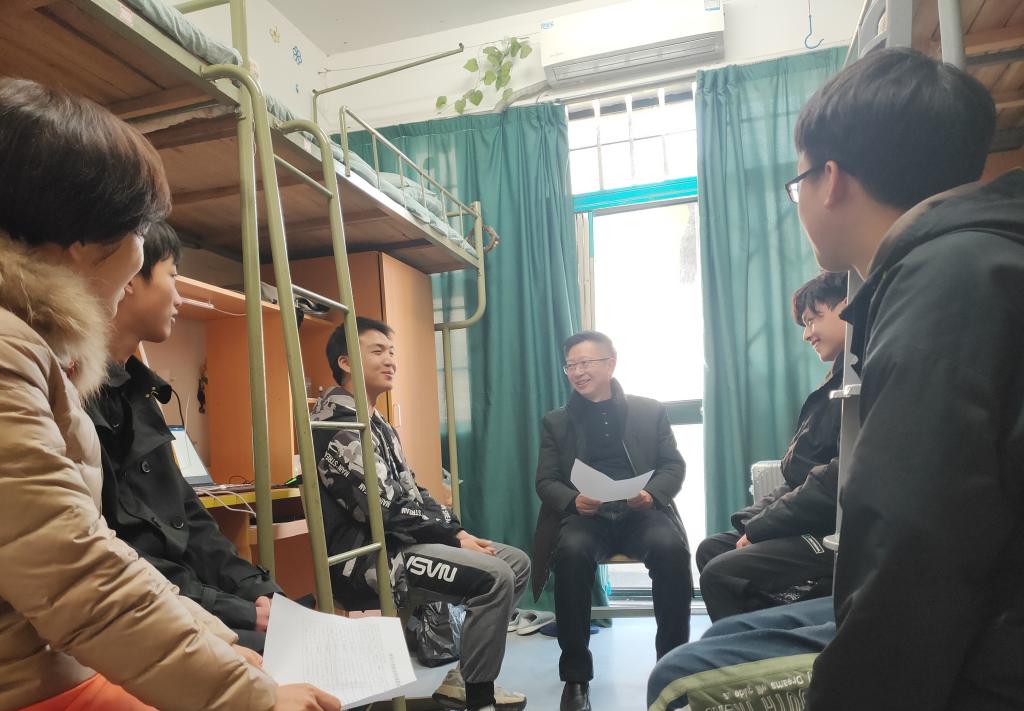 12月30日下午,公司党委委员、宣传部长金松在公司党委副书记徐敏和学工办主任翁添富的陪同下,走访了生命公司12号楼109、110寝室,在新年即将来临之际,给同学们送上新年祝福。