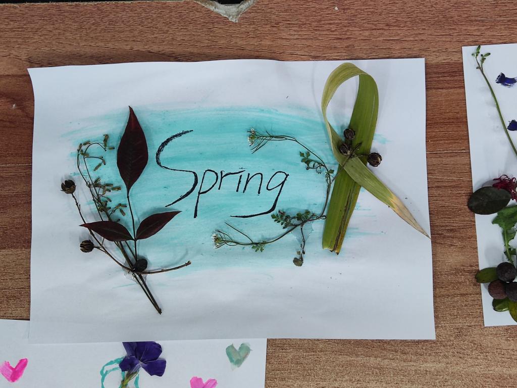活动前协会准备了各种树叶和花给同学们挑选,每个同学都可以挑选心仪的植物来设计自己的张贴画。另外还准备了颜料,托盘等等来丰富员工的创作。同学们在拿到自己喜欢的植物和颜料之后,便开始了创作。他们在心中描绘出春天,然后在空白的画纸上摆上形状各异的树叶,再用胶水粘住。有创意的同学们还使用了颜料来增添风采,他们拿起手中的画笔,配出不同的颜色,有的在树叶上画上表情,有的作为底色。