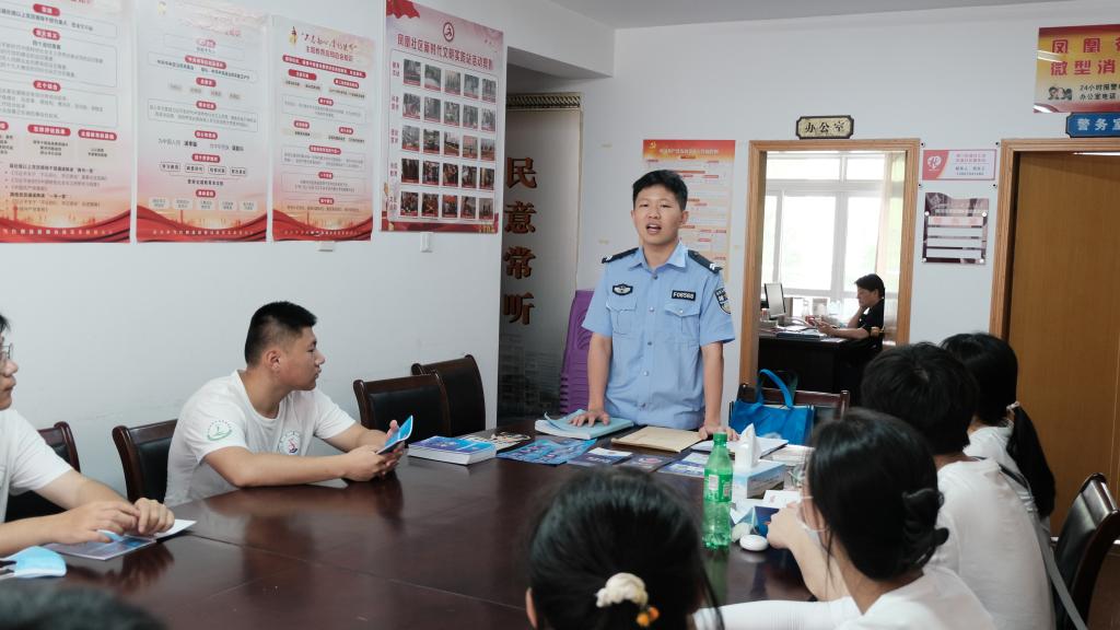随着网络科技的高速发展,诈骗手段也是五花八门。辖区民警王志豪通过讲解各类真实发生在群众身边的受骗案例为实践队员们普及常见的诈骗手段,包括网络贷款类、冒充亲友身份类、兼职刷单类、买卖游戏账号类、虚假“通缉令”“杀猪盘”等不同类型诈骗。