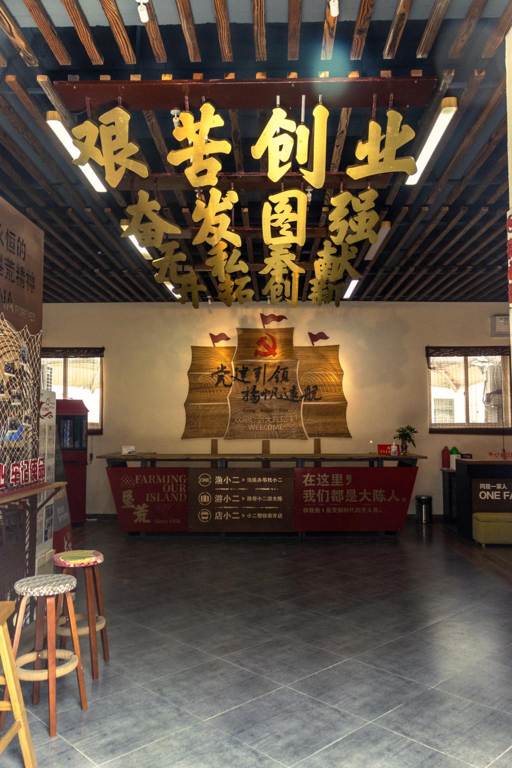 应王学敏邀请,实践队一同前往参观大陈镇党群服务中心。大陈镇党群服务中心坐落于大陈岛最繁华街区梅花湾。党群服务中心内设有党群学习室、党代表工作室、志愿服务站、谈心室和工作展示区等,整体设计充分融合了红色、海岛、垦荒三元素。王学敏详细介绍了党群服务中心的“三小二”志愿服务站点,即由镇里的年轻党员干部、村民代表等组成的“渔小二”代办员、“游小二”讲解员、“店小二”招商员,让服务方式从“单向”向“双向”转变,实现“点对点”精准高效服务,充分体现出大陈岛垦荒精神在新时代的延续和发扬,是精神共富的现实映照。