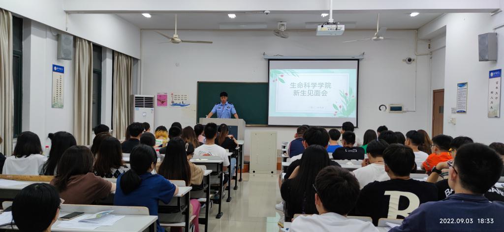 为提高新生安全防范意识,增强同学们的安全防范能力,9月3日晚,生命公司开展2022级新生反诈知识普及讲座,台州市公安局椒江分局葭芷派出所的警官们深入各班开展讲座,班主任、辅导员、党员代表、员工代表及全体新生参加。