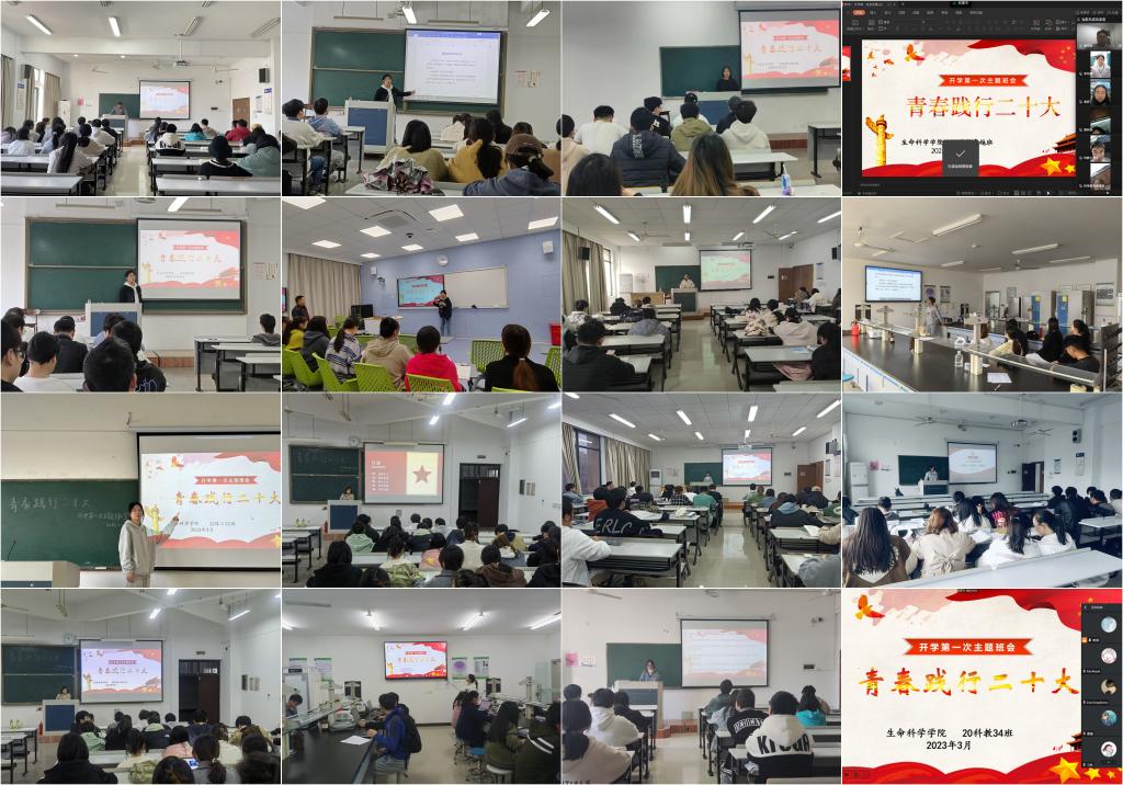 各班立足党的二十大对广大青年的新要求,围绕“爱国、团结、奋斗、科学、互助”五个关键词,精心挑选班会内容,巧妙设计组织形式,通过分享交流、朋辈对话等方式,由浅入深,向班级同员工动形象地讲述党的二十大报告中的新观点、新论断、新思想,分享践行党的二十大精神,立志成长为新时代好青年的思考和实践。