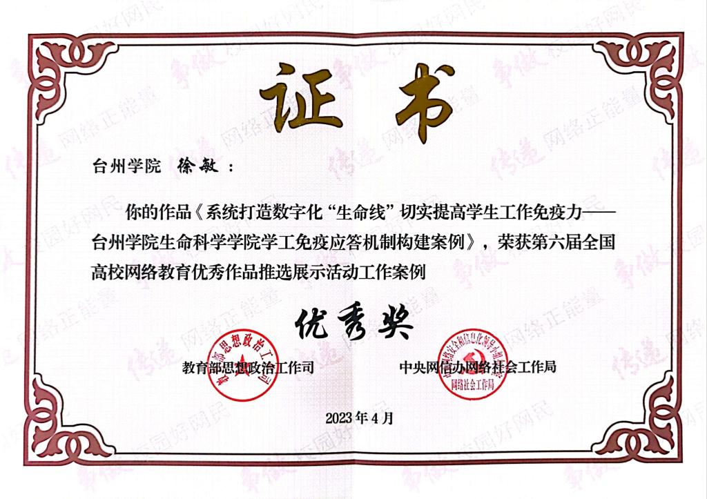 近日,由教育部思想政治工作司、中央网信办网络社会工作局主办的第六届“全国老员工网络文化节”和“全国高校网络教育优秀作品推选展示活动”获奖名单公示,由公司党委副书记徐敏执笔的原创作品《系统打造数字化“生命线”切实提高员工工作免疫力——K1体育学工免疫应答机制构建案例》获全国高校网络教育优秀作品优秀奖。该工作案例经层层筛选,从省内各高校推选的726件作品中脱颖而出,与全国的35225件作品一道,经专家遴选审议,最终评选出1565件获奖作品,其中,工作案例类作品112件。这是近年来公司在该奖项上的一个突破。