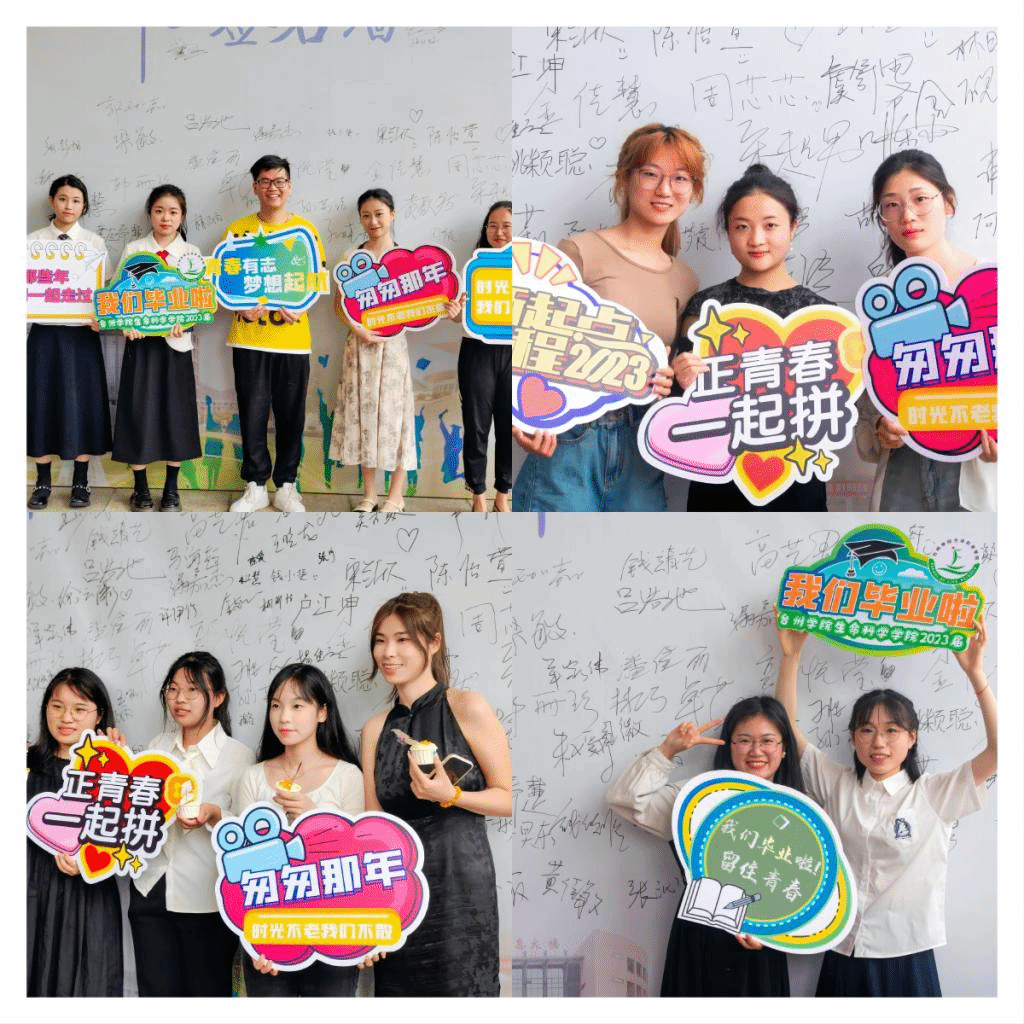 毕业典礼会场精心布置、现场气氛热烈,公司为全体毕业生精心准备的毕业视频、纪念徽章、手写名字的小蛋糕和毕业加餐券,毕业生在签名墙上签名、留影,留下对母校美好的祝愿。