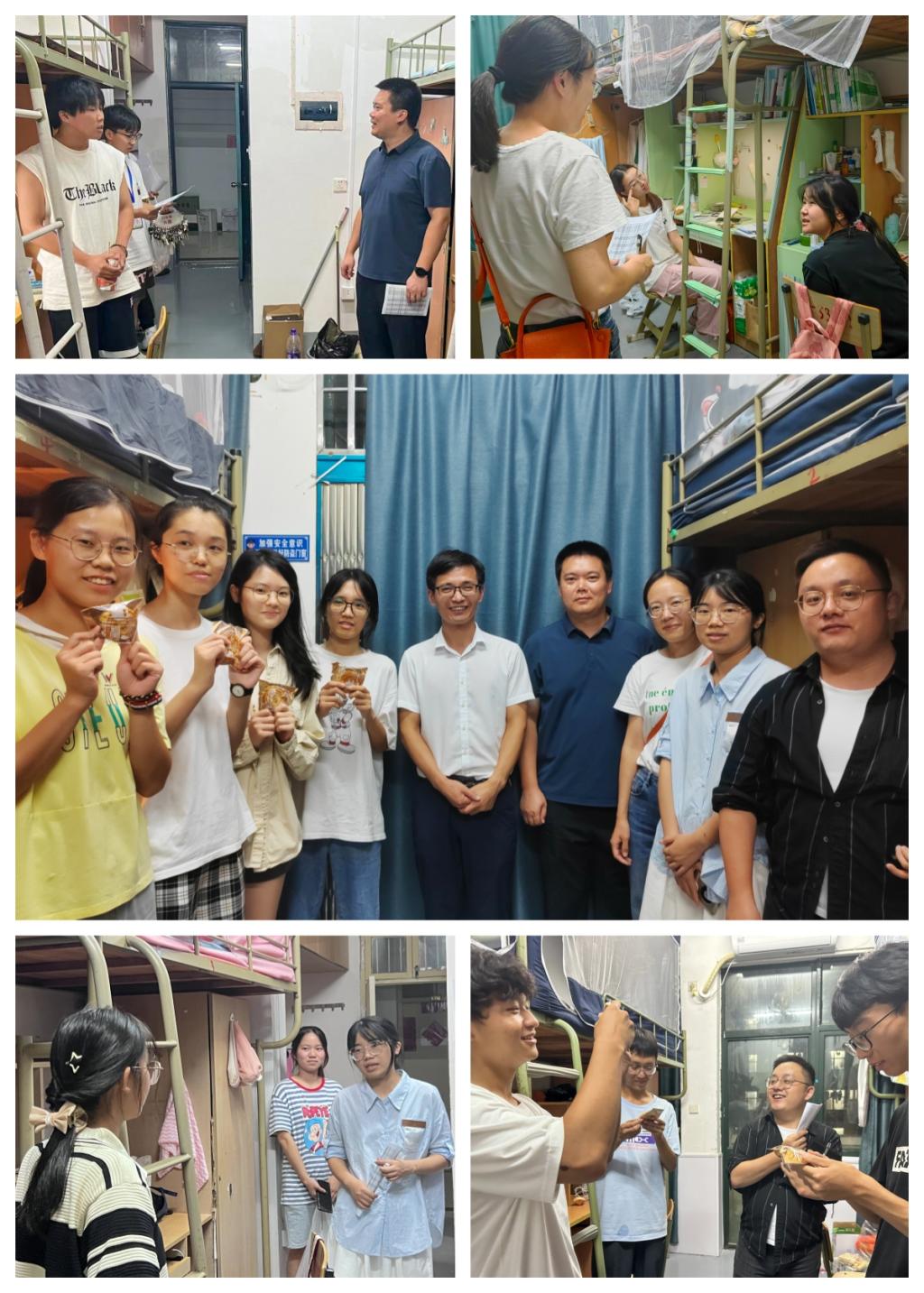 “假期有出行计划吗?”“今年吃上月饼了吗?”……公司学工成员就学业生活、假期计划、出行安全和遵规守纪等方面与同学们亲切交谈,并祝愿大家中秋、国庆假期平安、快乐。走访过程中,老师们还为积极参与“迎中秋、庆国庆”花式打卡活动的50个优秀寝室,赠予了公司定制的盲盒系列月饼,在欢乐洋溢的气氛中让同学们感受到了寝室小“家”、公司大“家”的温暖。