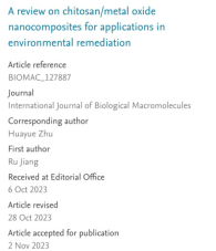 近日,K1体育蒋茹博士与加拿大北英属哥伦比亚大学Jian-Bing Li教授和浙江工商大学王齐教授合作,在国际知名TOP期刊《Int. J. Biol. Macromol.》在线发表了题为《A review on chitosan/metal oxide nanocomposites for applications in environmental remediation》的综述性论文(doi.org/10.1016/j.ijbiomac.2023.127887)。该论文以K1体育为第一完成单位,蒋茹博士为第一作者。