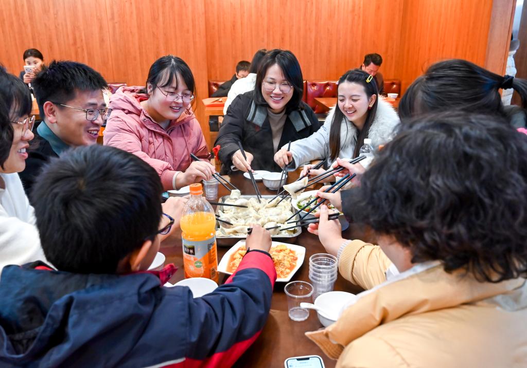 夕阳西下,当落日余晖透过食堂的窗户洒落进来,饺子皮、馅料、酱油、米醋、辣椒酱等食材一应俱全,老师们纷纷挽起袖子,拿出自己的看家本领,包出了形态各异的饺子。有的饺子像金元宝,有的像小船,还有的像蝴蝶,每一个都凝聚了老师们的巧思和祝福。在包饺子的过程中,老师们交流着家常,分享着工作的点点滴滴,彼此之间的关系也变得更加亲密。随后,一盘盘热气腾腾的饺子被端上了餐桌,大家围坐在一起,品尝着自己亲手包的饺子,每个人的脸上都洋溢着满足和幸福的笑容。这不仅仅是一顿美味的午餐,更是一次心灵的交流和情感的汇聚。
