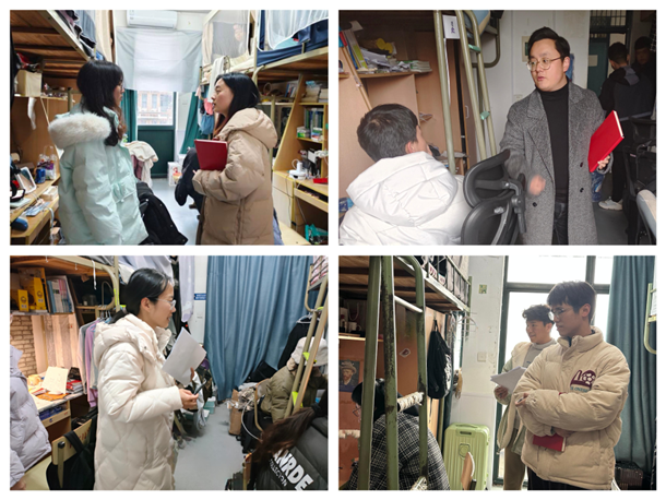 安全宣传暖心行动辐射全院272间员工寝室,旨在实现对全院1065名员工的安全宣传教育全覆盖。由辅导员和员工干部组成的五个行动组,全面排查了员工寝室在内务卫生、消防安全等方面的情况,对存在的隐患和问题予以登记,并加以督促整改。同时,行动组还向在寝员工逐个进行规范用电、严禁明火、水电分离等方面的安全宣传和普及教育,并鼓励同学们从自身做起,严守安全底线,从身边抓起,共建平安家园,真正将充满关怀和温暖的这份“平安礼”送进千宿万舍。