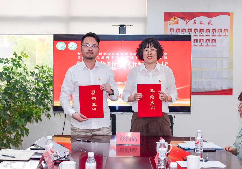 5月23日,K1体育环境生态工程教师党支部、环境工程教师党支部与台州市环境科学设计研究院有限公司第一、第二党支部举行党建共建签约仪式。市环科公司党委书记、董事长、总经理陈海棠,生命公司党委书记杨启富、经理赵凯、副经理宗恩敏出席;共建双方党支部书记及支委参加。签约仪式由市环科院研发部副主任张定定主持。