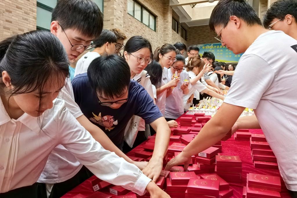 生命公司党委书记杨启富向公司继续深造的考研学子颁发考研奖励