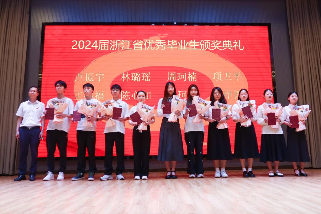 毕业典礼在激昂的校歌声中拉开序幕。项凤日为浙江省优秀毕业生颁发证书、为员工联络大使颁发聘书并赠送纪念徽章,公司经理赵凯为校优秀毕业生颁发证书,公司党委书记杨启富向继续深造的考研学子颁发考研奖励。