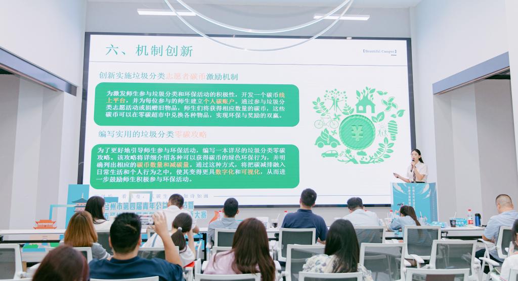 生命公司“零碳超市”公益项目在校团委的大力支持下,由台州市新时尚垃圾分类发展研究院邱勇、台州市垃圾分类办严姜苗、中再生双江环卫有限公司赵巧蝶、生命公司辅导员李莎莎联袂指导、精心准备、认真打磨,并选派22环境工程1班刘意同学代表团队作项目路演,并最终斩获优秀奖。