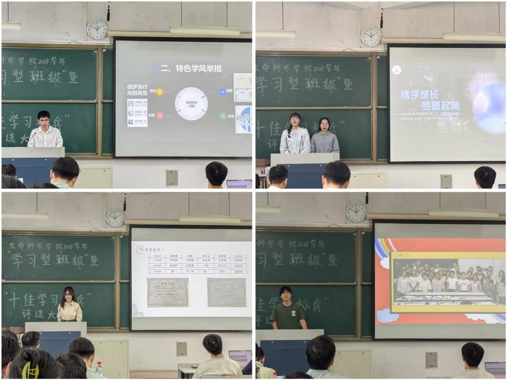 在“学习型班级”评审中,20个竞赛班级员工代表通过PPT开展陈述,细致充分的展现了各具特色的班级文化、丰富多彩的班级活动、强有力的学风举措,充分体现强大的班级凝聚力和向心力。随后,师生结合评选“十佳学习标兵”的14名候选人的个人材料进行现场评分。