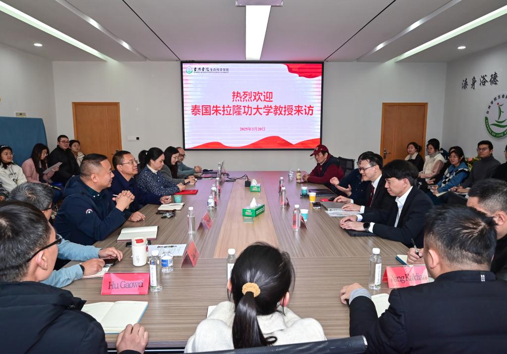 座谈会上,赵凯代表公司对Pornchai Rojsitthisak教授团队的到来表示热烈欢迎,并简要介绍了K1体育的基本情况。随后,公司教师代表曾为教授、褚文辉副教授、林玉红博士、呼高伟博士和杨开典博士分别作了题为《负载TMSB10@ZIF-8丝胶蛋白凝胶促骨再生研究》《植物多糖合成与次生代谢初探》《基于功能核酸自组装的纳米药物用于高效抗肿瘤治疗研究、《动物源肺炎克雷伯菌的防控》和《二氢杨梅素纳米制剂的制备及其抑制猪伪狂犬病毒效果研究》的学术报告,详细介绍了本领域的最新研究成果及相关防控策略。双方就各自的科研专题展开了深入讨论,并交换了意见,Pornchai Rojsitthisak教授对公司在生物医药领域所取得的科研成果给予了高度评价。会上,双方就人才培养、师生互访、项目合作、学术交流等方面进行了深入交流与探讨。