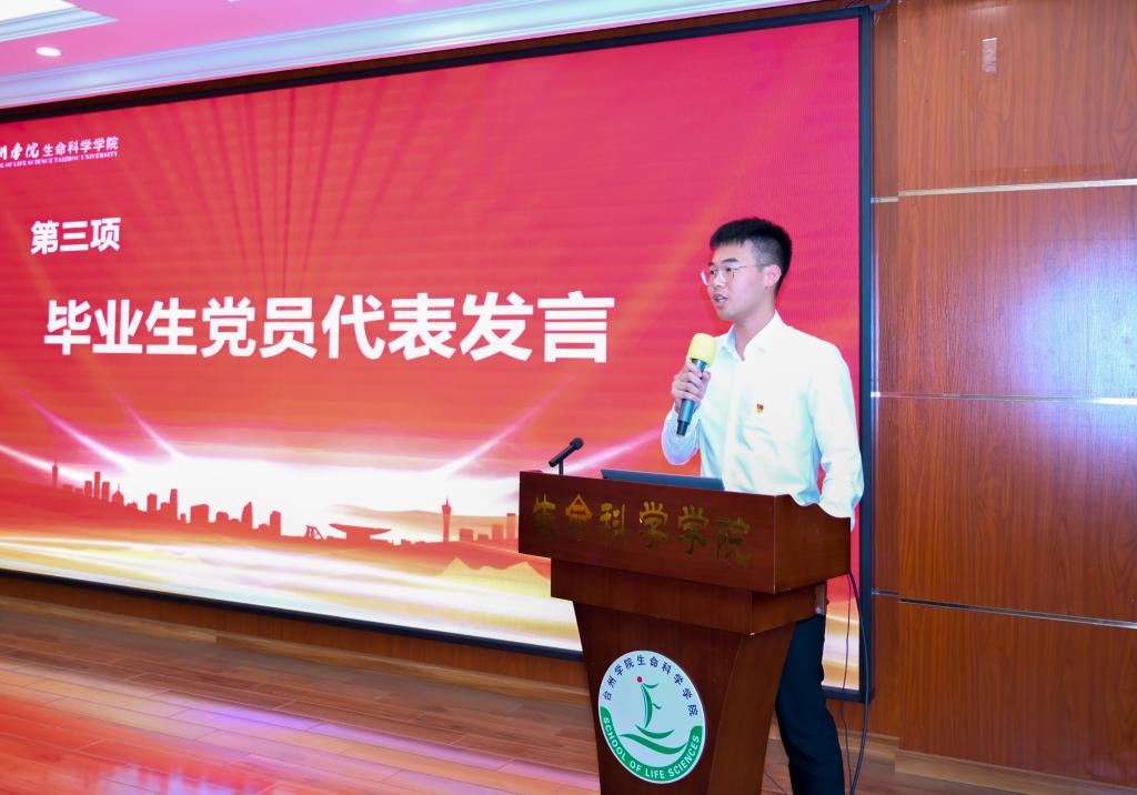 宣誓结束,2021级科学教育卓越班黄冠杰同学代表毕业生党员发言,他回顾入党以来的心路历程,分享在大学期间学习和生活的经历、感悟,号召全体毕业生党员在今后的工作和生活中,始终保持对党的忠诚、对人民的热忱、对事业的执着,在不同的岗位上发光发热,用行动诠释“请党放心,强国有我”的誓言。