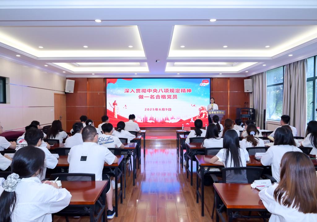 活动最后,郑晓莉为毕业生党员讲授离校前的最后一堂党课,结合深入贯彻中央八项规定精神学习教育,引导广大毕业生做一名合格党员。她带领员工党员再次重温中央八项规定及其实施细则,并结合典型警示案例,详细阐述违反中央八项规定精神的主要表现,引导员工党员深切领悟腐败问题常常肇始于小事小节的疏忽失守,将“眼中所见的反面教训”切实内化为“心底长存的敬畏戒惧”,持续强化遵规守纪的思想自觉与行动自觉。