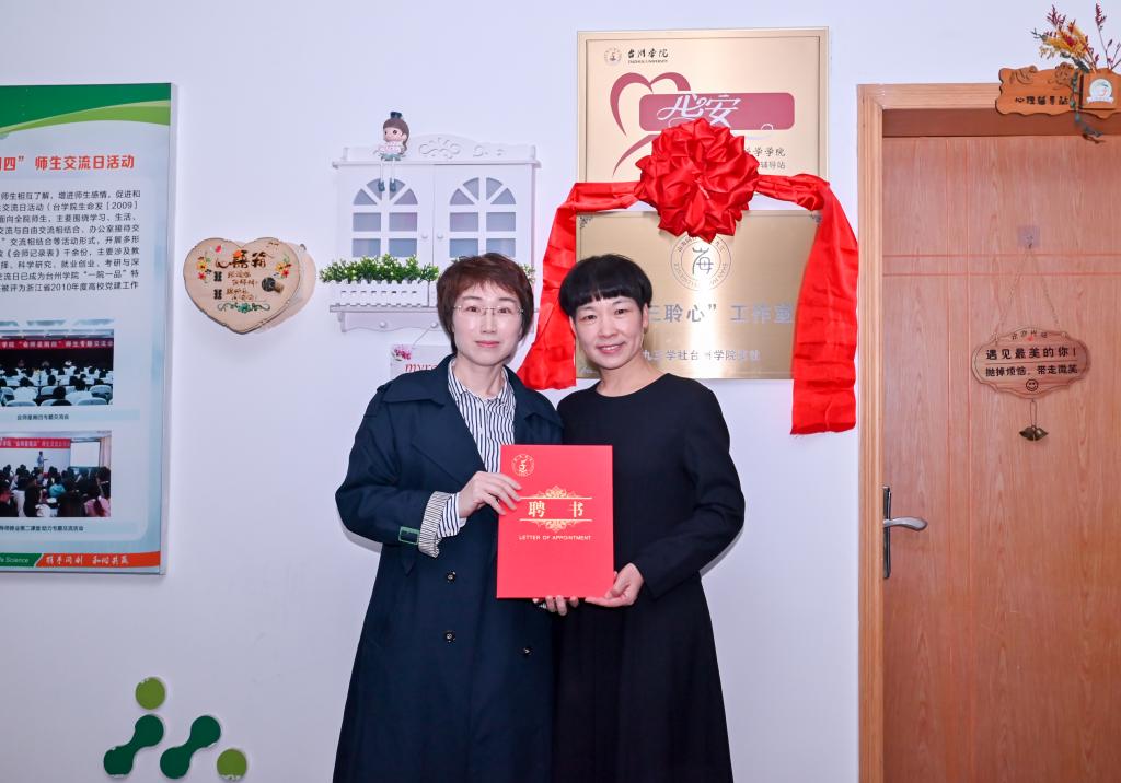 项凤日与吴小红共同为“九三聆心”工作室揭牌,张梅芬为工作室负责人赵建芳颁发“心安”心理辅导站专家聘书,与会人员共同参观指导“心安”心理辅导站。