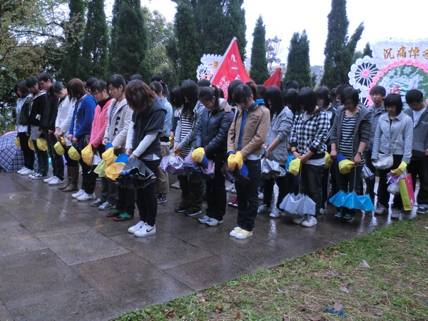 “清明时节雨纷纷”,当天空中飘起绵绵细雨,苍松翠柏掩映中的临海东湖烈士陵园显得格外庄严肃穆。在老师的带领下,志愿者们怀着无比崇敬的心情来到烈士陵园。烈士纪念碑前,同学们向烈士们敬献花圈,为烈士们默哀,祈祷,表达了大家对烈士们无尽的追思。随后,志愿者们自发清理陵园垃圾,活动全程井然有序。