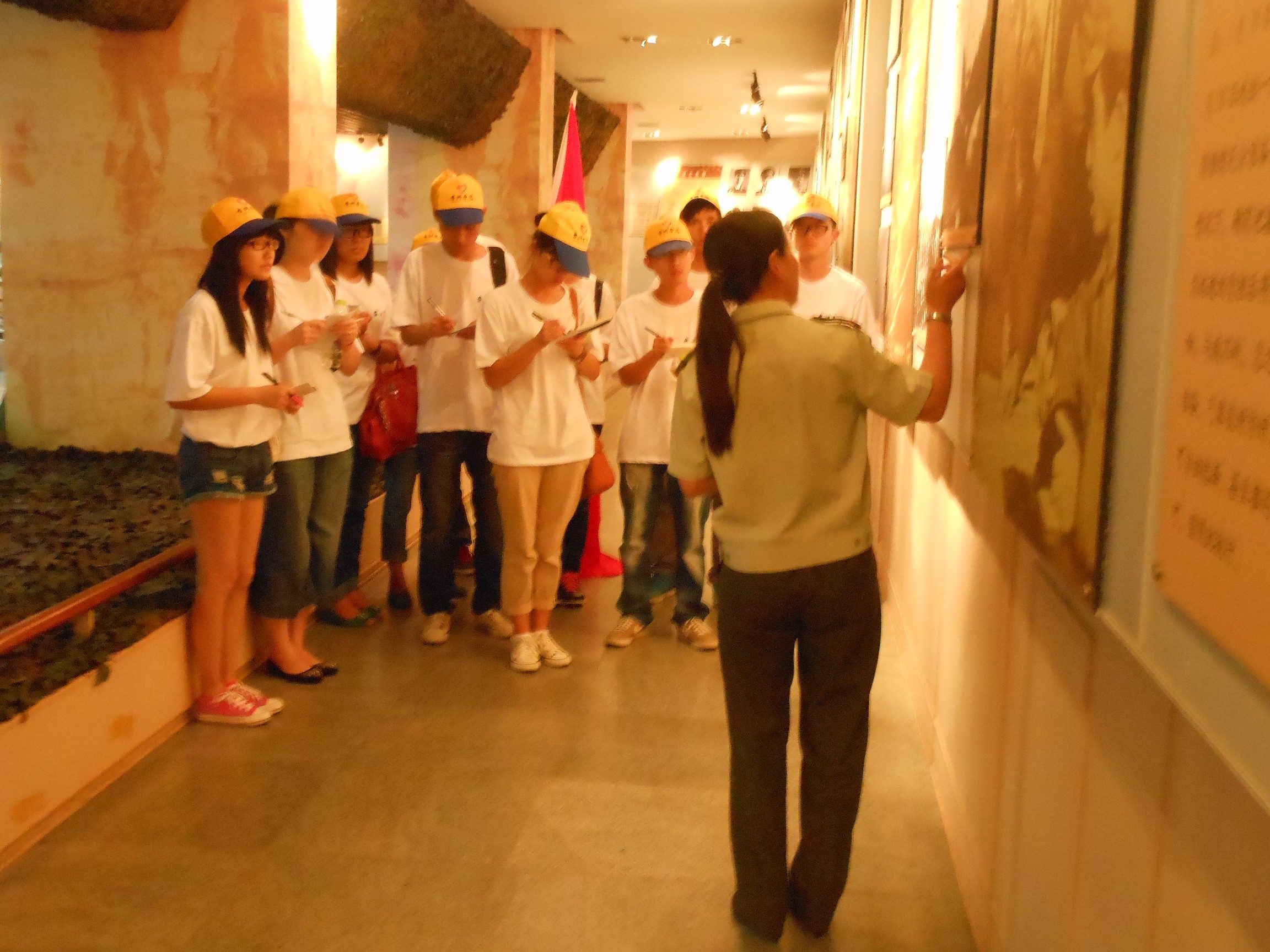 实践队抵达纪念馆,首先映入眼帘的是海、陆、空三军主题雕塑,展现了当年全国首支三军联合作战队伍的飒爽英姿。随后,讲解员带领队员们参观整个纪念馆,细致的介绍、逼真的实体文物、三维的作战演示电影,让所有的队员深刻了解到“一江山岛战役”的背景以及整个作战的历程。同时,“追寻红色记忆”实践队员们与纪念馆宣教组组长徐怡针对纪念馆的旅游开发情况、馆内文物的保护收集现状等方面展开座谈交流,她表示一江山岛登陆战纪念馆在红色文化遗产保护方面的努力众所周知,馆内拥有严格的保护及应急措施,虽然在建馆初期存在诸多困难,但通过工作人员的共同努力,取得的成绩可喜可贺。她强调一江山岛登陆战纪念馆更是受到椒江市教育局的高度重视,通过组织各校员工积极参与由纪念馆主办的大型活动,不仅加强了红色文化的宣传力度,更是对员工起到了深层次的教育作用,也让广大游客和市民切身感受到红色文化遗产是当今文化生活中必不可少的一部分,具有深刻的教育意义。