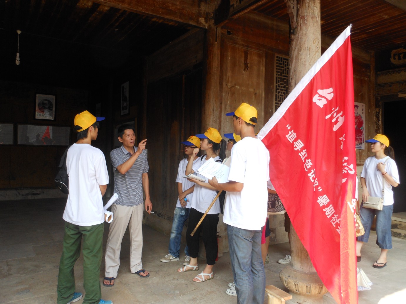 本次采访调研活动得到了岭根村村民的热烈欢迎和大力支持,并由岭根村村长王国红带领着实践队进行整个寻访活动。王村长表示,辛亥革命志士王文庆曾积极参与反清革命活动,同时还加入光复会和同盟会,为宣传革命思想以及革命的胜利作出了巨大的贡献。他的故居为砖木结构的二进二层四合院,建筑用料严谨,装饰雕木工艺精湛,有大小房屋共计33间,占地约4000平方米,坐北朝南,双台门设置,彰显着大宅门的风范。同时,村长高涨的热情和详实的介绍,不仅深深感染了在场的每一位队员,而且让队员们更深一步地了解到王文庆烈士的英勇事迹和壮义凛然,不禁对他肃然起敬。在村长的引导下,我们缅怀着王文庆烈士的宏伟事迹,品读着壮烈的红色精神。小溪的流水淙淙,古驿道的环绕缠绵,建筑的古色古香,村民的淳朴作风,岭根村的悠悠古韵和亮丽风景,让队员们尽收眼底。而后全体队员来到坐落在岭根村后山的王文庆烈士陵墓,三鞠躬以表达敬意。据悉,虽然部分故居建筑已遭破坏,但是在当地政府的大力支持和岭根村民的努力下,其他故居建筑的修缮正在大力开展,为进一步保护王文庆故居,弘扬红色革命精神而不断努力。