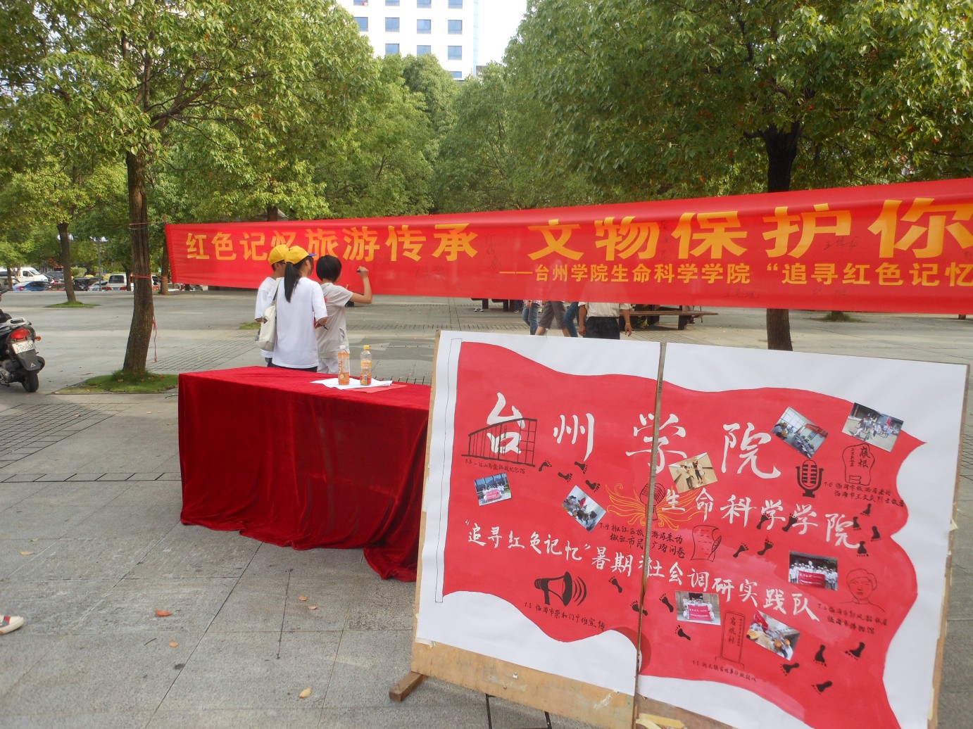 为了解广大临海市市民对红色文化的了解程度和认知情况,扩大影响范围,宣传红色旅游文化,弘扬红色革命精神。7月8日下午,K1体育“追寻红色记忆”暑期社会实践队在临海市崇和门广场开展问卷调研活动以及“红色记忆旅游传承 文物保护你我同行”宣传活动。