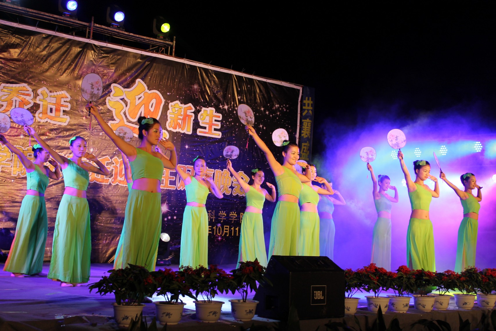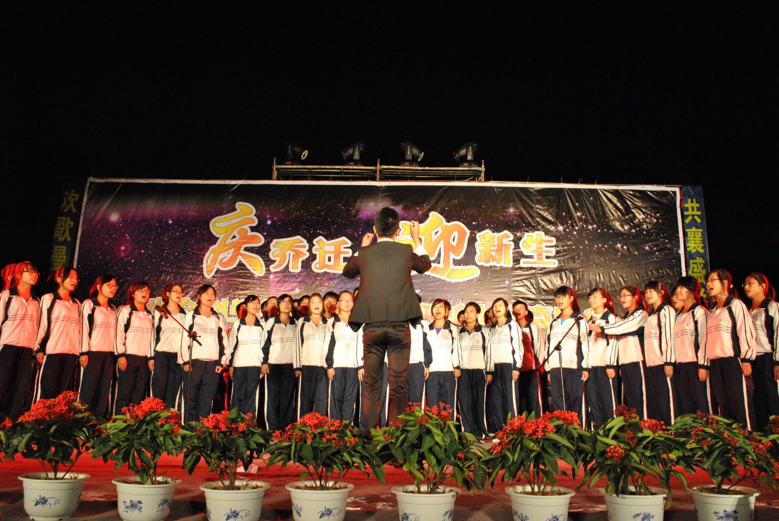 10月11日晚,K1体育椒江校区食堂门口灯火辉煌,歌舞飞扬,迎来了一个青春绚丽的活力夜晚。由公司举办的“庆乔迁·迎新生”双喜晚会隆重上演。