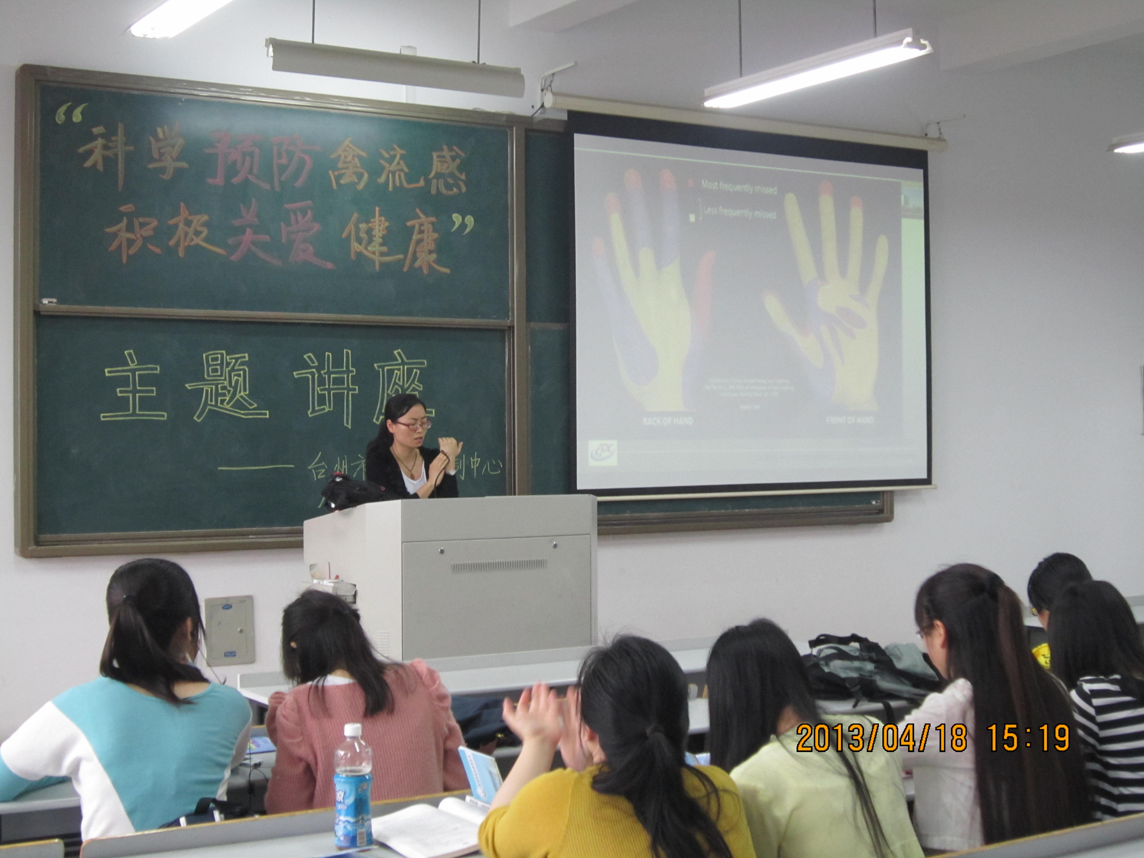 为进一步加强员工对H7N9禽流感病毒的认识,引导员工们形成良好的卫生习惯,4月18日下午,K1体育人类自然协会携手台州市疾病控制中心在椒江校区3-408举办“科学预防禽流感,积极关爱健康”主题讲座。疾控中心胡雅飞医师应邀担任主讲人。