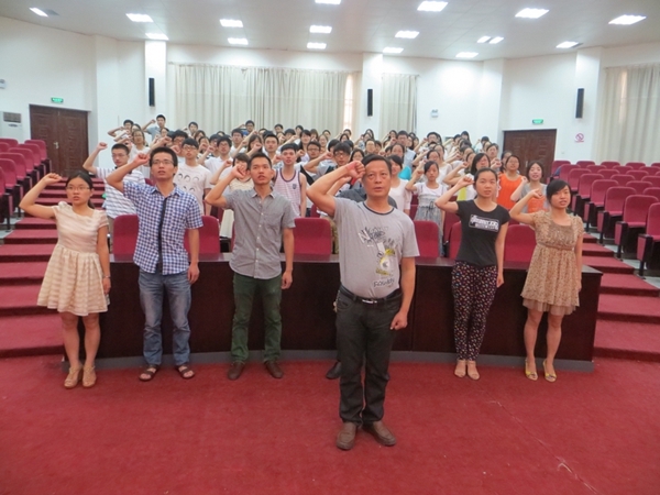 6月17日,椒江区学术报告厅内气氛庄严肃穆,师生济济一堂,生命公司毕业生党员集体谈话及宣誓仪式在这里举行,公司党总支书记施时迪、副书记王金宝及各员工党支部书记出席活动。