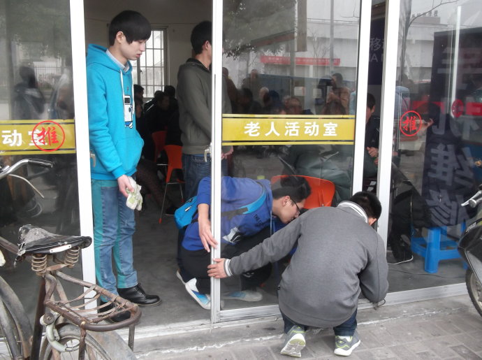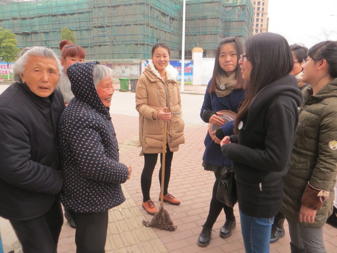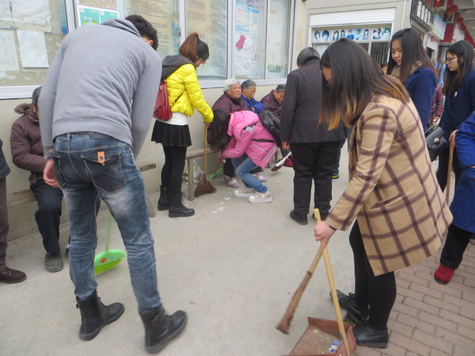 本次活动主要分为打扫整理和聊天谈心两大块。全班同学佩戴班徽,自带打扫工具到了之后便立即分头行动。扫街道、擦门窗、抹桌子、倒垃圾,大家齐心协力,卫生工作开展的井井有条,为老人整理出了一个干净整洁的活动中心。同时,老人们也和部分台州本地的同学聊的不亦乐乎,欢乐的笑容荡漾在每个老人的脸上。打扫、聊天这一件件小事汇聚成了一首动人的美德之歌。