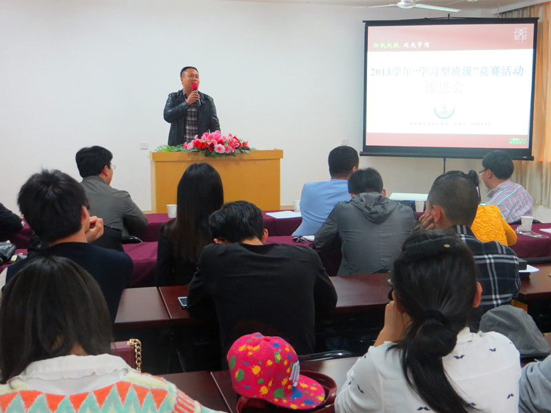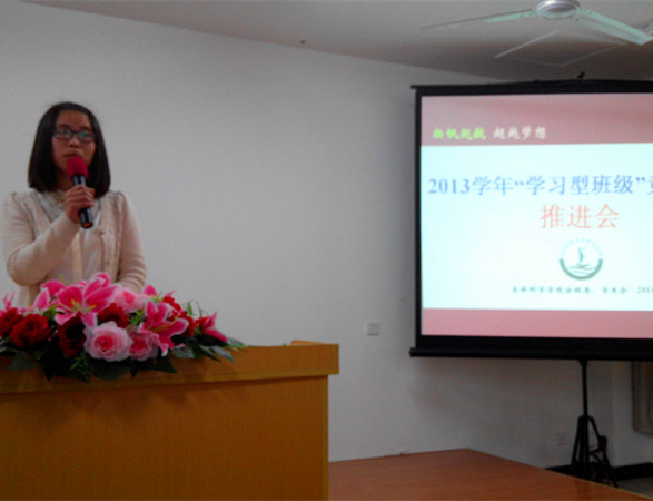 会上,校优秀班主任齐鑫老师首先就如何有效开展“学习型班级”建设作了典型发言,跟大家一起畅谈工作感受,分享管理经验。接着,11生物教育1、2班和11财务管理3、4班的同学代表,用精美的PPT,精彩的演讲,分别从民主制度建设、班级文化建设、班风学风建设、团队凝聚力建设等方面,以“累累硕果展学风”、“班级建设创学风”、“特色工作促学风”,向大家充分展现了“校特优学风班”的风采,其中许多做法和举措,比如,班干部工作例会、茶话班务制度、结对帮扶活动、学习互助小组等,很值得学习与借鉴。与会同学还就“如何提高考试通过率”、“如何有效开展党员干部联系寝室”等问题进行了互动交流,现场气氛热烈而浓厚。另外,陆超超同学代表竞赛班级作了表态发言。