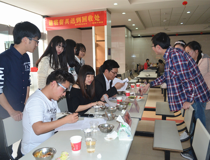 大赛分设以豆腐为核心原料的创意组和不限食材种类的传统组,共吸引52个团队参赛。比赛伊始,各个参赛选手们精神饱满,摩拳擦掌,迫切地希望用自己的双手烹饪出一道道精美的佳肴。煎、炒、烹、炸,现场弥漫着诱人的香味,传统组的味道令人印象深刻,创意组的奇思妙想令人拍手称绝。选手们还对烹饪的菜品进行解说,给佳肴增添一份人文和情感。色彩鲜明的《辞冬迎春》述说了春天的朝气;逗趣可爱的《醉酒姑娘》描绘田园的风趣;怪诞张扬的《冰雪奇缘》讲述了生活的浪漫。厨艺大赛现场热闹非凡,吸引了众多同学围观。专业评委从色、香、味、形等多个方面对参赛作品进行考核。此次比赛还增设微博评选阶段,最后,综合专业评委评分和网络票选,14环境工程专业的徐沛东等同学凭借一道《菠萝菠萝米》获得评委青睐,在传统组脱颖而出,获得冠军;13生物教育的毛七梅等同学的《醉酒姑娘》摘得创意组桂冠。
