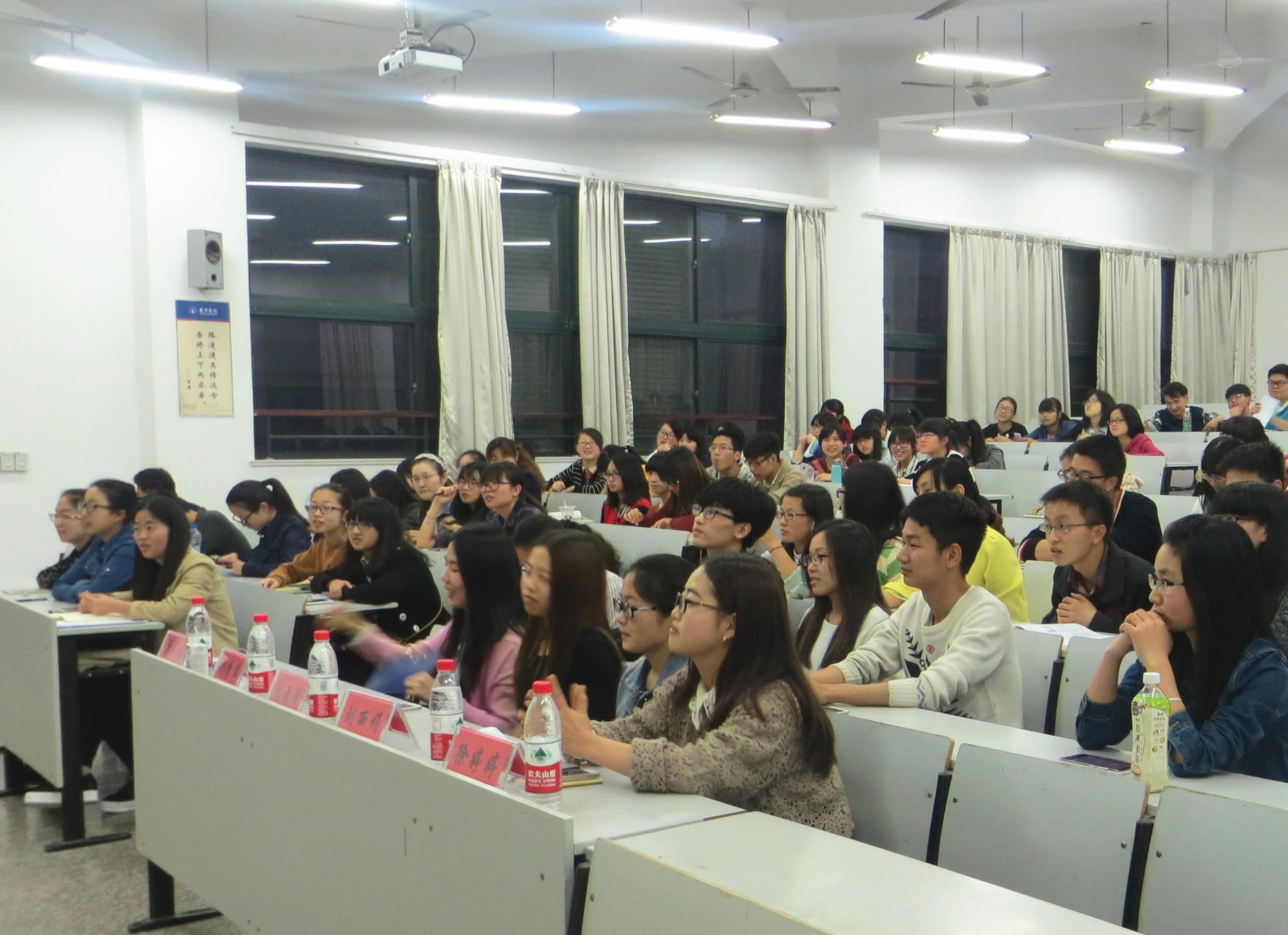 大会伊始,五位优秀的11级学长分别从招聘信息、笔试题型、面试讲课及实习经验等方面对教师招聘进行了系统而全面的讲解,帮助低年级同学了解教师招聘的政策和具体的应聘方式,鼓励同学们尽早开始准备,利用空余时间加强教师技能的训练,在教师招聘的道路上打一场有准备的仗。交流会上幽默诙谐的求职演说,严谨干练的题型分析,博得了现场听众的阵阵掌声。随后,屠幸杰同学还介绍了礼仪着装、互动交流的重要性。每位讲述人都以自身的人格魅力与文化素养感染了每一位听众,振奋了在座师范生的进取之心。最后,同学们积极发言提问,并与主讲人们深入交流,整个交流会充满了浓厚的求知求职氛围。