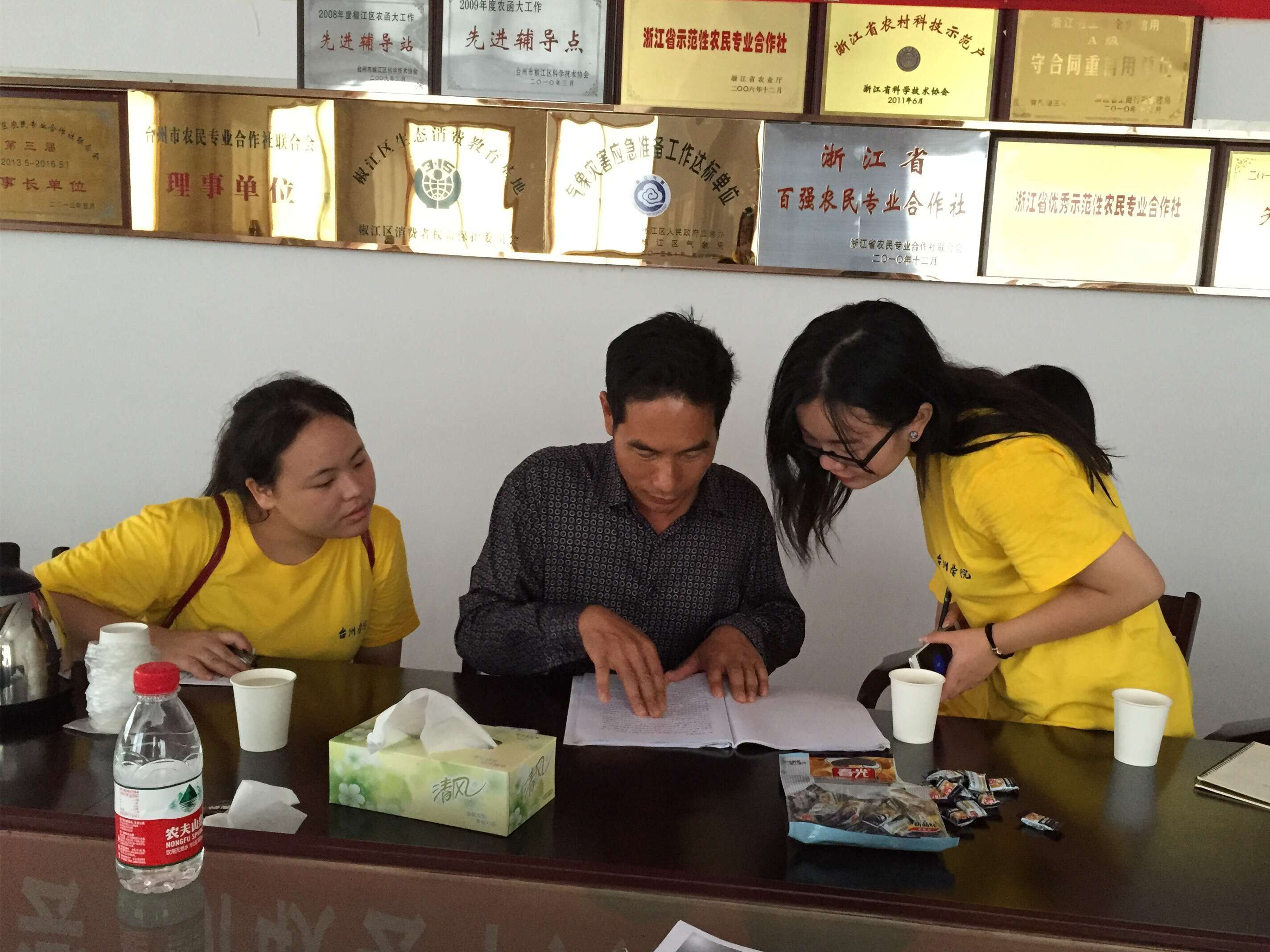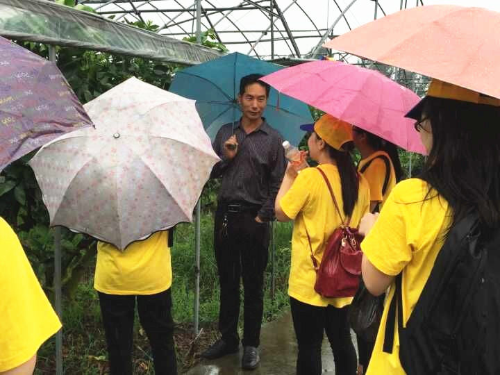 理事长甘金友先生带领下全组人员进入种植基地,介绍了基地概况和农场种植柑橘状况。实践队员还与理事长就柑橘的经济效益、技术改良、营销战略、发展前景等进行交流。